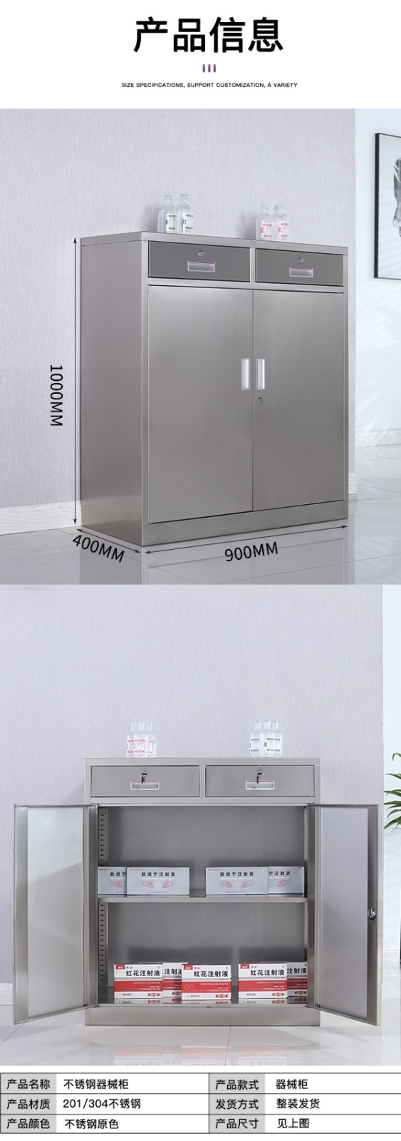 不銹鋼西藥柜二斗下節(jié)