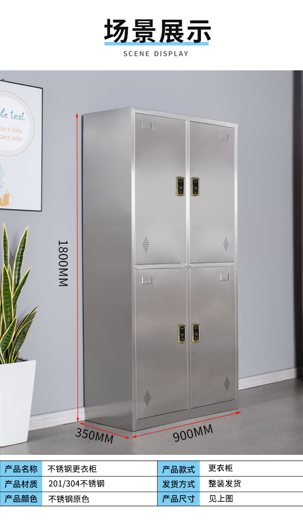 4門(mén)不銹鋼更 衣 柜-智能鎖